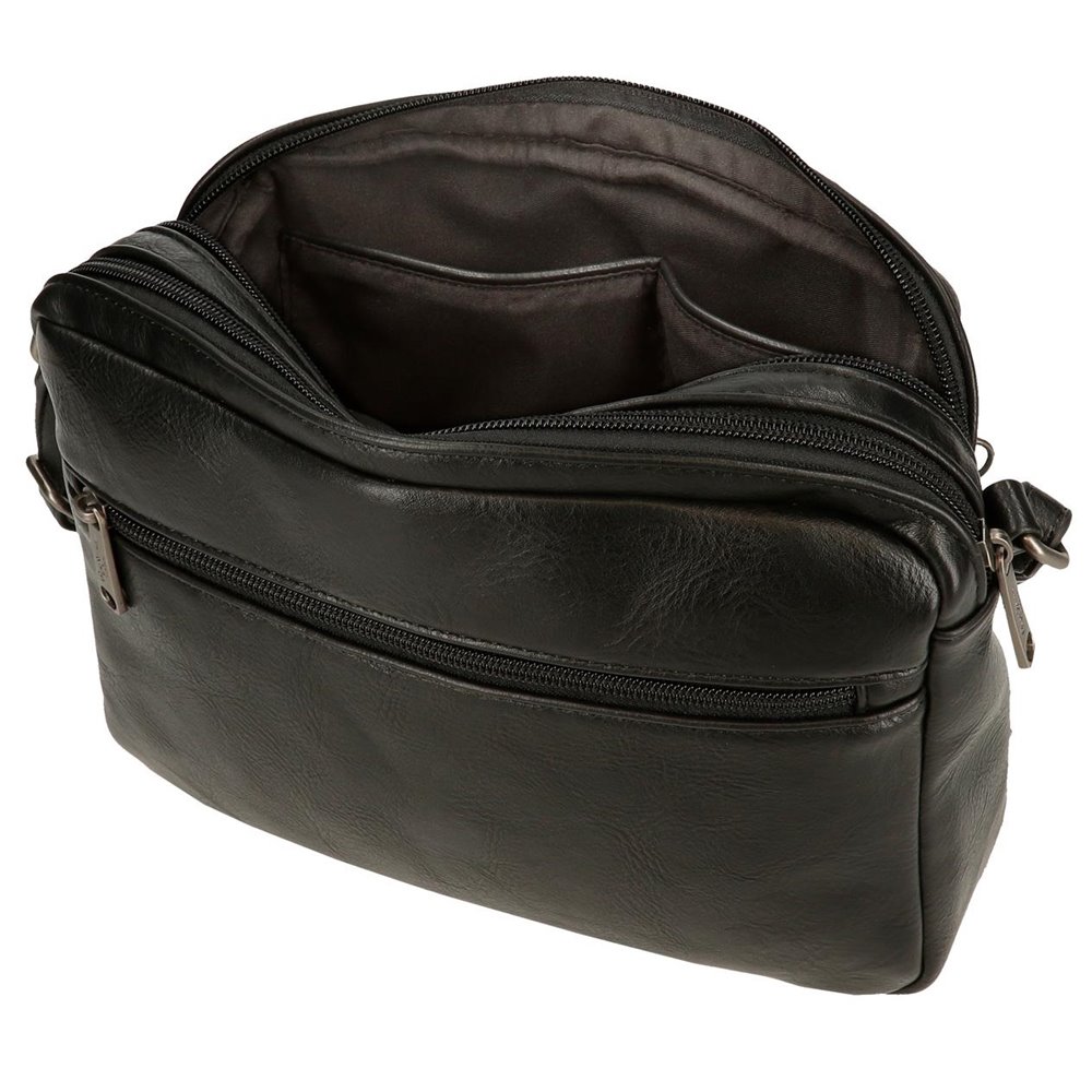 Bandolera con doble cremallera fabricada en piel sintética, combina sus materiales y acabados en un estilo monocolor. Dispone de: