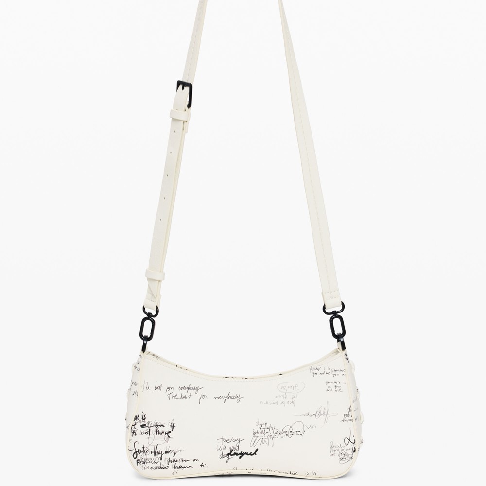 Bolso pequeño con tejido efecto piel, trenzado y estampado de lettering con textos Desigual.