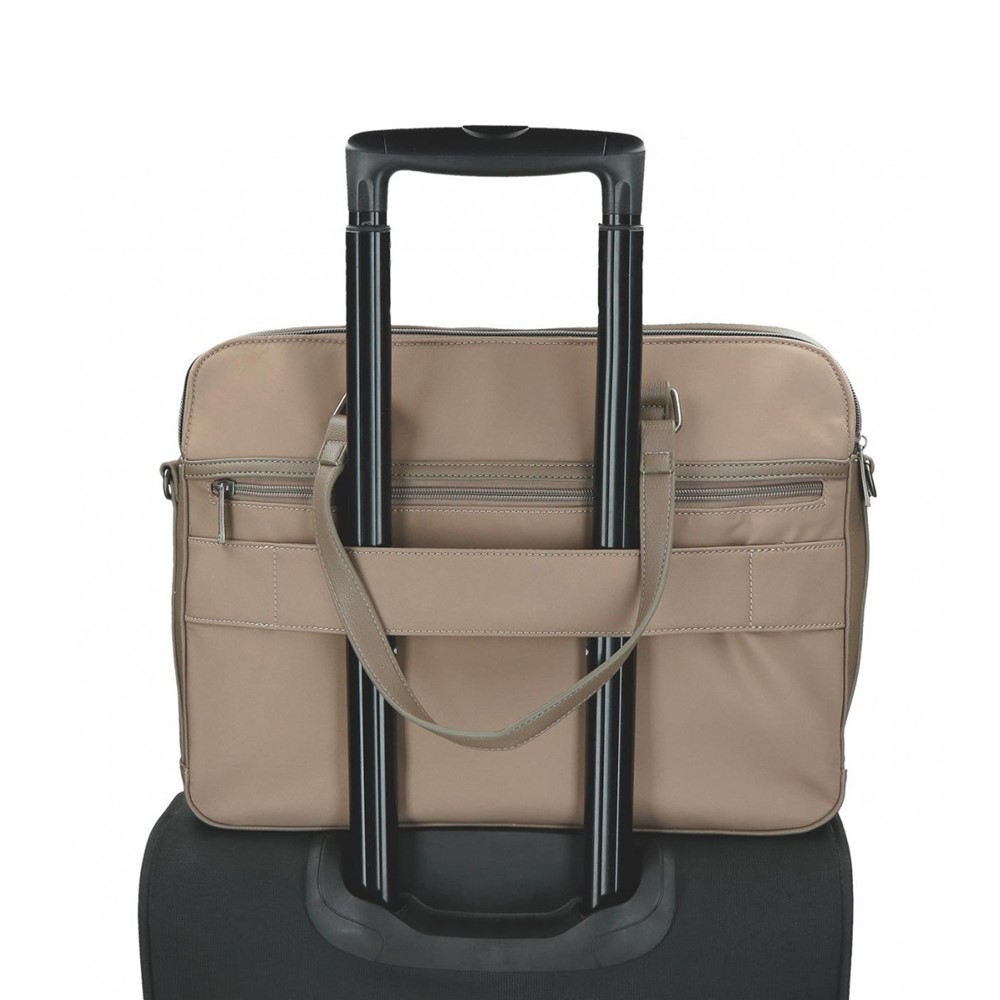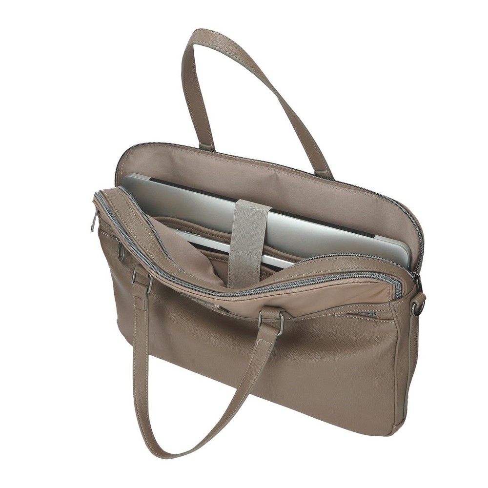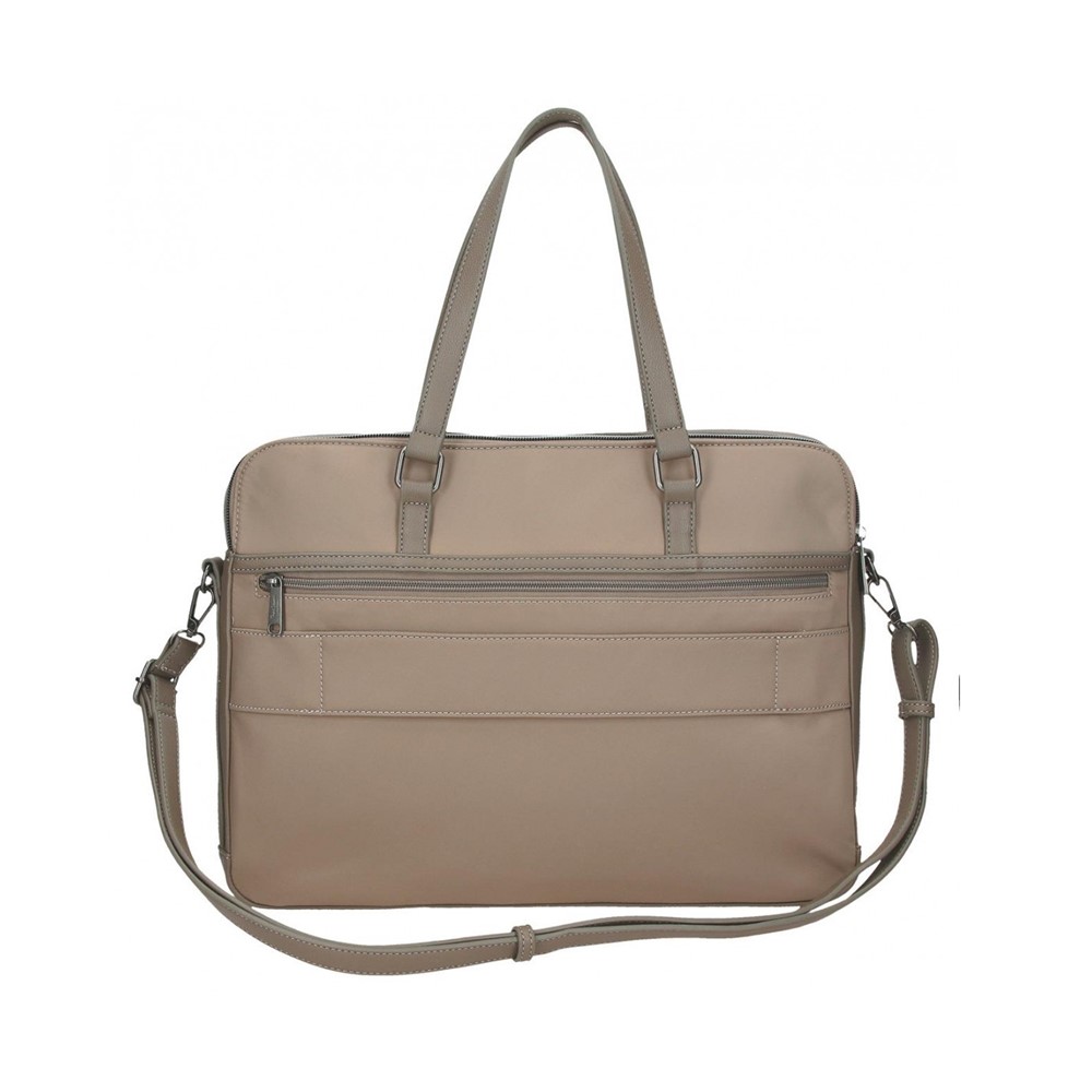 Maletín portaordenador fabricado en poliester y piel sintética, combina sus materiales y acabados en un estilo monocolor. Dispone de: