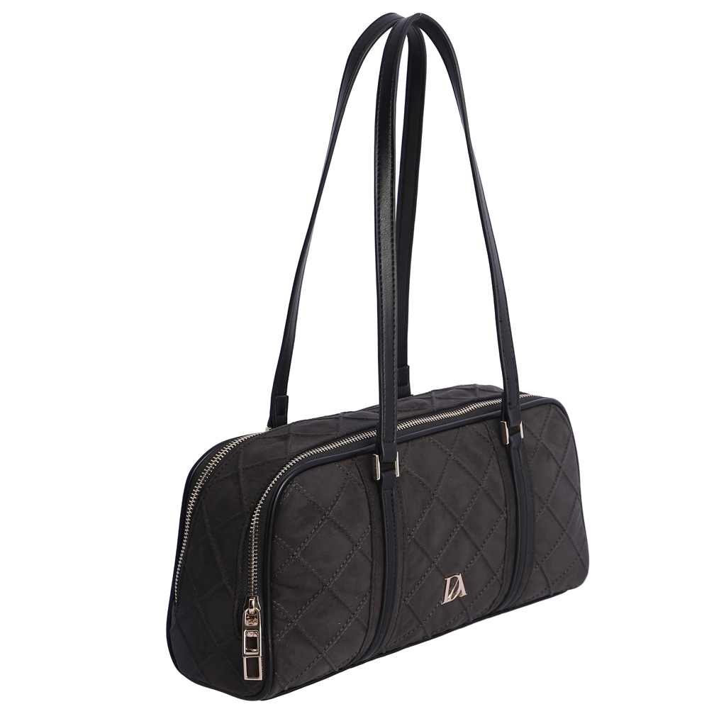 Bolso shopper fabricado en piel sintética con dos asas de hombro. Tiene cierre de cremallera, con compartimento interior, más un bolsillo exterior trasero también con cremallera. Lleva el logotipo de la marca en aplique metálico. Detalles de la cremallera y apliques metálicos en color dorado. Interior de poliéster.