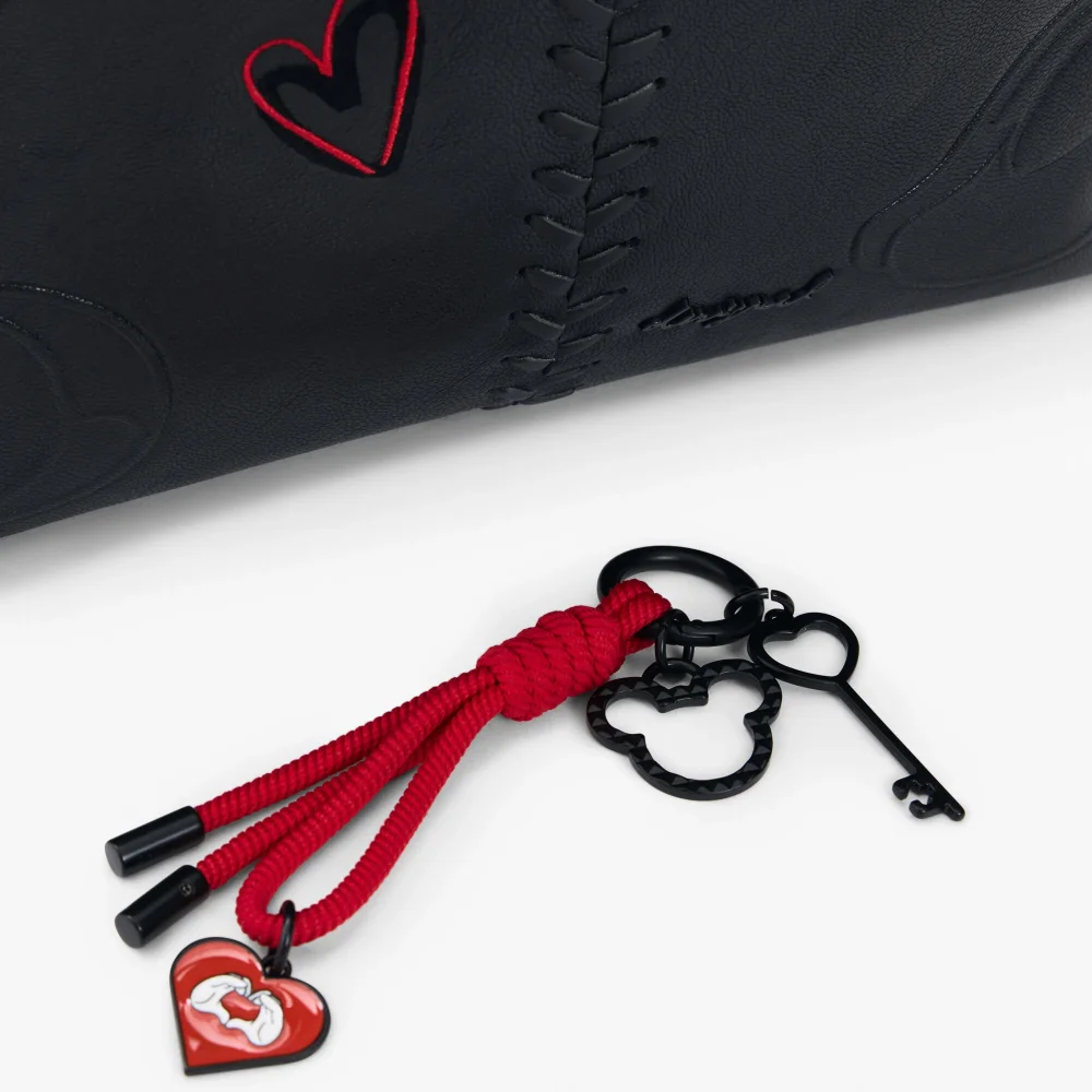 Mochila pequeña con asa trenzada, bordados de Mickey Mouse™ y charms extraíbles.