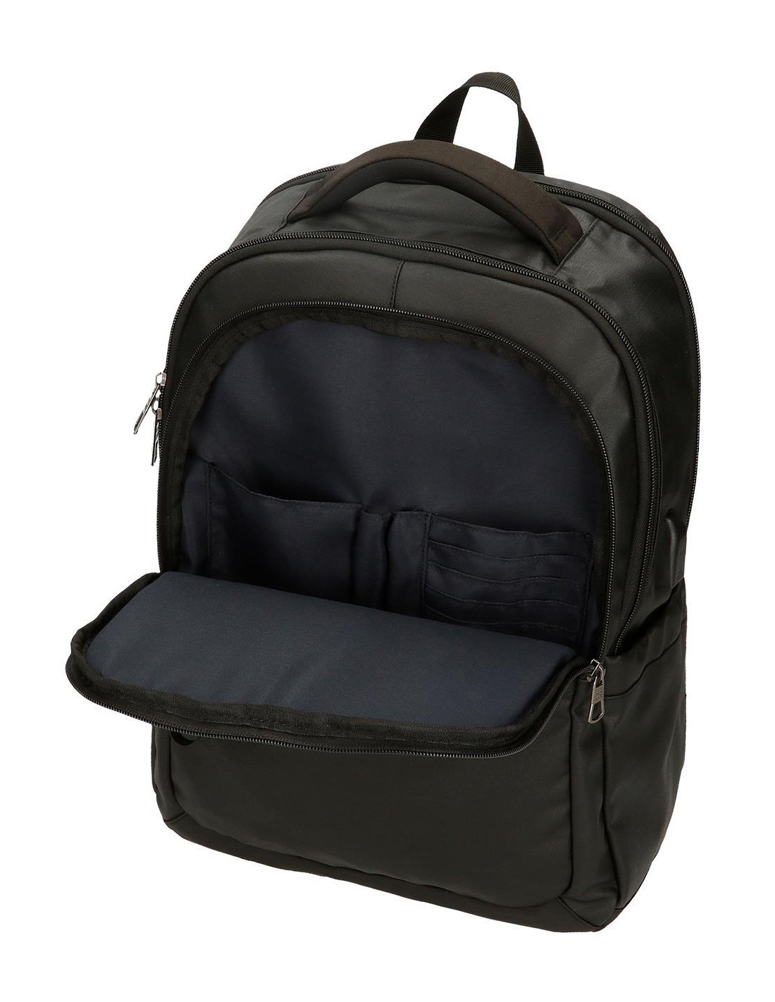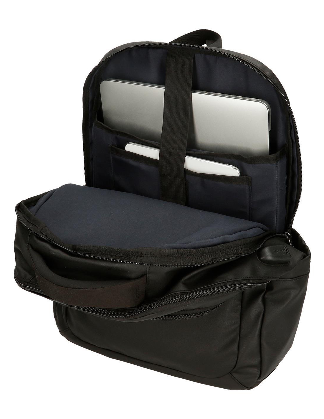 Compartimento frontal con bolsillo y organizador interior para guardar los gadgets, efectos personales o material de oficina.