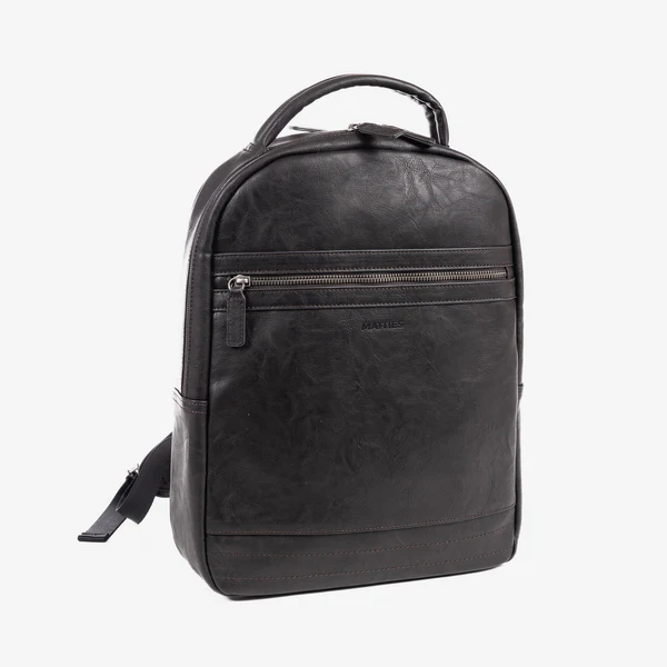 Mochila portaordenador de Matties fabricada en piel sintética. Doble compartimento principal con espacio específico para un portatil de 13 pulgadas. Organizador interiores, para guardar 3 bolígrafos y 4 ranuras para guardar tarjetas. Tirantes anchos y ergonómicos que se adaptan perfectamente a la espalda y bolsillo trasero con cremallera..