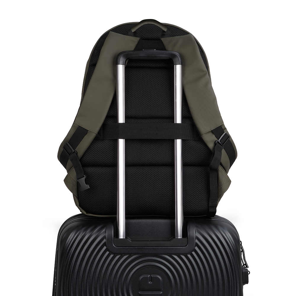 Mochila para portátil de 15,6″ de poliéster. Cuenta con 3 departamentos, clasificador, organizador, cinturón ajustable a pecho y con acople a maleta. Incluye forro de alta calidad, acolchado y con organizador para portátil. Fabricado con material libre de plásticos PVC.