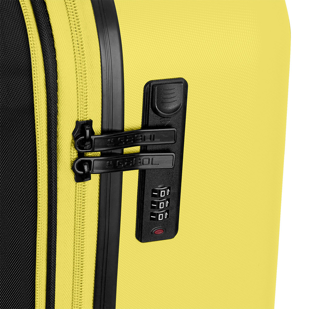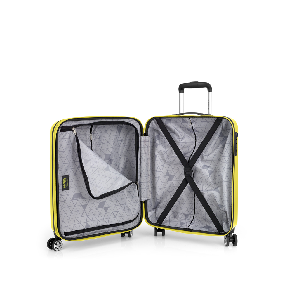 Maleta cabina rígida, con expandible y con capacidad hasta 41,1 L. Fabricadas en ABS. Su interior esta compuesto por un forro, con un separador y un bolsillo. Cuentan con 4 ruedas dobles multidirección. Cerradura de combinación.