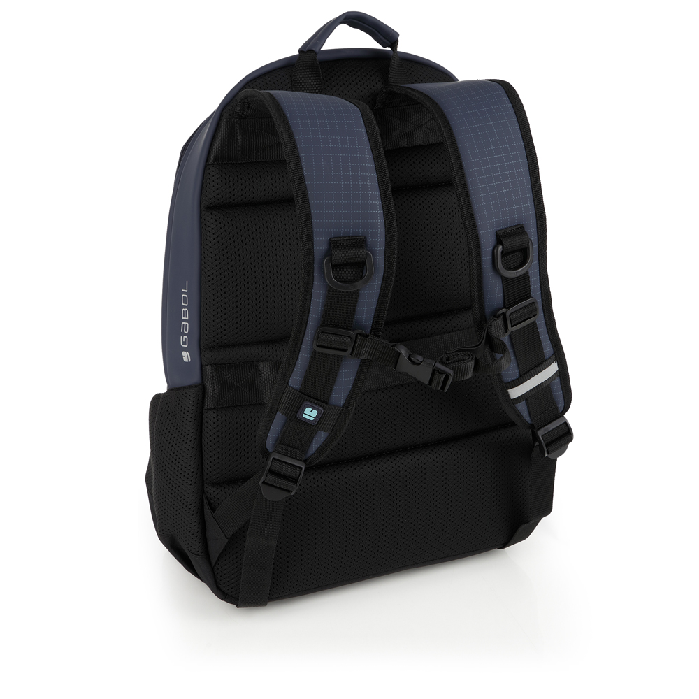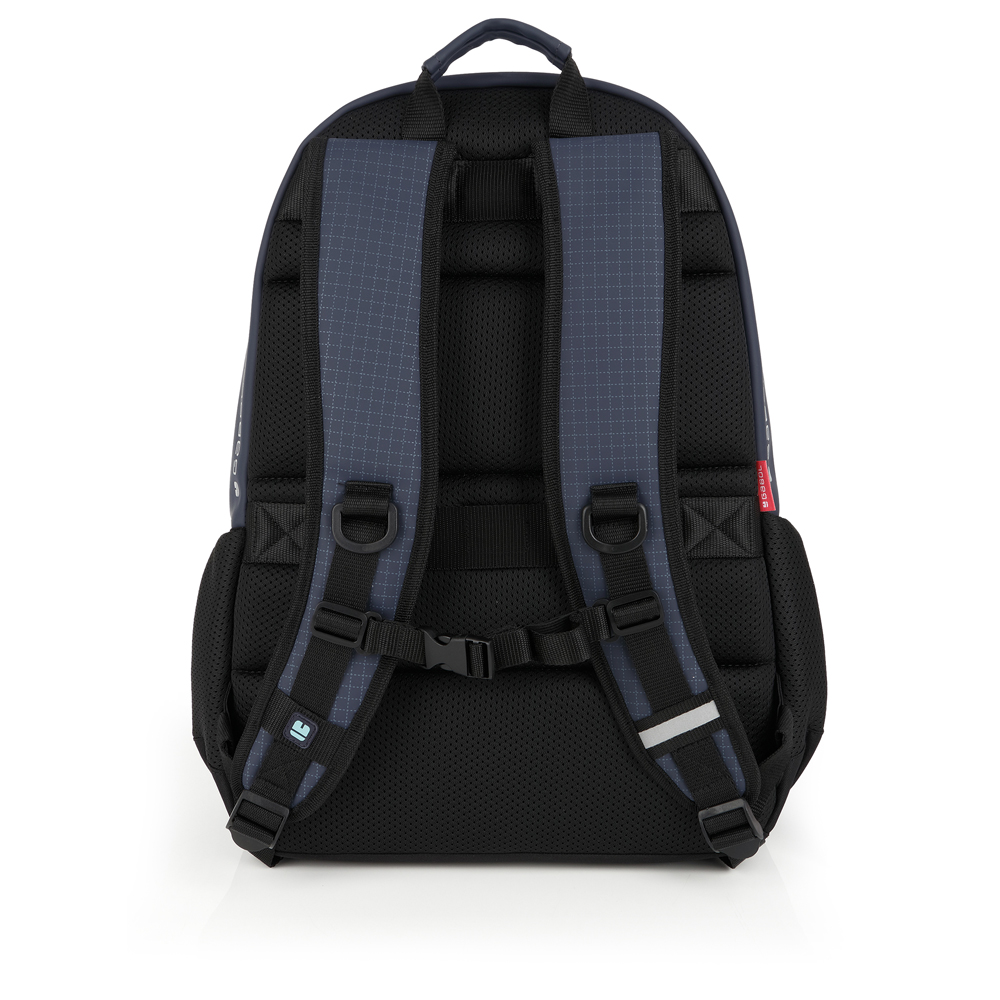 Mochila de dos compartimentos Gabol Lion. Material: piel sintética. Contiene organizador y cinta de acople a pecho y también a carro. Etiqueta reflectante.